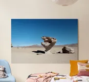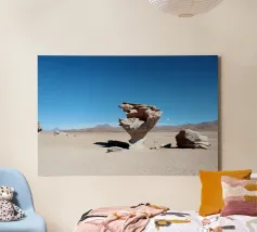 Un paesaggio desertico con un albero spoglio e rocce sotto un cielo blu intenso, catturato nel cuore del deserto di Atacama in Cile. Una scena cruda e maestosa al tempo stesso, che illustra la potenza della natura e l'immensità del paesaggio sudamericano.