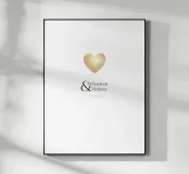 Celebrate l'amore con questo disegno personalizzabile che raffigura un bellissimo cuore d'oro e i nomi e la data da voi scelti. Perfetto per matrimoni, anniversari o fidanzamenti, questo elegante disegno può essere applicato a una varietà di prodotti. Un ricordo senza tempo che aggiunge un tocco personale e romantico a qualsiasi occasione.