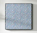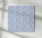 A repeating pattern features diamond shapes in soft pink and white against a light blue background, creating a geometric design. The arrangement of the shapes provides a sense of rhythm and harmony.