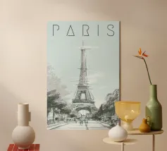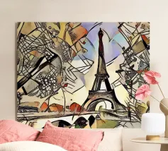 La Torre Eiffel è un noto punto di riferimento di Parigi e simboleggia l'intera Francia in tutto il mondo. La realizzazione grafica mostra la torre composta solo da parole. Motivo moderno e decorativo con figure geometriche che enfatizzano l'effetto della Torre Eiffel e la mettono in primo piano.