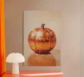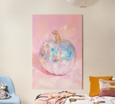 A stunning pumpkin adorned with reflective disco ball, creating a dazzling visual effect.