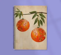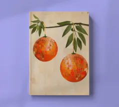 Un'illustrazione contemporanea e giocosa che raffigura due arance trasformate in palle da discoteca, appese a un ramo frondoso. I toni caldi degli agrumi si fondono con le texture riflettenti del mosaico, creando un sorprendente contrasto tra natura e festa. La composizione appare leggera, grafica e gioiosa, perfetta per aggiungere un tocco audace e moderno e un pizzico di umorismo agli interni contemporanei.