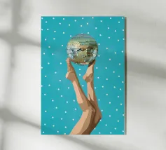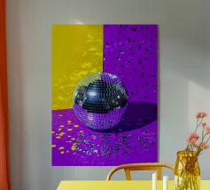 Entrate nella pista da ballo con questo poster digitale abbagliante che raffigura un paio di gambe con tacchi alti argentati e scintillanti, in equilibrio sicuro su una palla da discoteca riflettente. La scena dinamica si staglia su uno sfondo a scacchiera grigio e bianco deformato, creando un'estetica pop art retrò vibrante e surreale. Questo pezzo accattivante è perfetto per aggiungere glamour, atmosfera di festa e un tocco di nostalgia a qualsiasi salotto, camera da letto o area di intrattenimento. Realizzata con una notevole risoluzione di 7000x5000 pixel e 300 dpi, questa stampa digitale di qualità superiore assicura che ogni dettaglio scintillante e ogni audace motivo