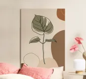 Disegno minimalista a una linea di una singola foglia di filodendro plexiglass