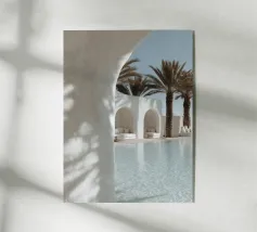 Fuggite in un paradiso bohémien con questa splendida fotografia di una doccia esterna bianca su un tetto illuminato dal sole di Marrakech. Il design minimalista, con le sue linee pulite e le texture naturali, si fonde perfettamente con il caldo sole marocchino, creando un'oasi di tranquillità sopra la città. Circondato da pareti bianche e piastrelle in terracotta e da una leggera brezza, questo spazio sereno evoca un senso di libertà e relax. Ideale per infondere alla vostra casa l'eleganza rilassata dello stile marocchino, questa immagine cattura la bellezza della vita all'aperto e lo spirito del fascino senza tempo di Marrakech.