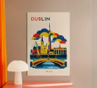 Una celebrazione audace e grafica di Dublino, catturata attraverso una geometria pulita e vivaci blocchi di colore. I monumenti iconici costeggiano il fiume in un'armonia stratificata, con silhouette decise e forme ritmiche che creano un senso di movimento ed equilibrio. La composizione appare vivace ma allo stesso tempo solida, riflettendo il mix di storia, cultura ed energia contemporanea di Dublino.