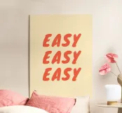 Stampa tipografica minimalista con la parola ripetuta "Easy" in caratteri caldi e dipinti a mano. Su uno sfondo morbido e neutro, questo disegno incoraggia un ritmo dolce, un'energia calma e una mentalità rilassata. Perfetto per interni moderni, scandinavi e accoglienti, dona una presenza rassicurante e rilassante a soggiorni, camere da letto, uffici o spazi creativi.
