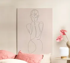 Un'illustrazione line art minimalista dal titolo. Cattura un momento tranquillo e introspettivo - l'equilibrio tra forza e vulnerabilità. Perfetta per interni moderni che abbracciano la quiete, la grazia e l'arte della semplicità.