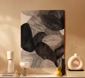 Interlocking oval forms and rhythmic line work create a striking abstract pattern, blending modern minimalism with hand-drawn texture.
