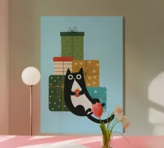Questo scoiattolo illustrato geometricamente tiene amorevolmente tra le zampe un piccolo dono, pronto a regalare la gioia. Con forme chiare, colori vivaci e uno stile moderno e minimalista, questo motivo è un vero e proprio richiamo visivo. Ideale come biglietto di Natale, poster o idea regalo per gli amanti del design e degli animali.