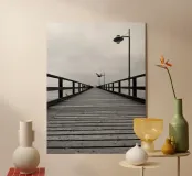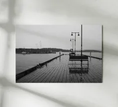 minimal photography, black and white, pier, jetty, boardwalk, sea, ocean, symmetry, leading lines, perspective, calm, silence, stillness, horizon, minimalism, fine art photography, modern wall art, monochrome, coastal photography, peaceful, zen, architecture