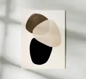 Una composizione astratta e minimalista, caratterizzata dalla sovrapposizione di forme organiche nei caldi toni della terra e del nero. Gli strati traslucidi creano un morbido senso di equilibrio e profondità, evocando l'armonia naturale di pietre o forme in tranquilla sospensione.