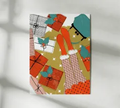 Bring the warmth of holiday baking into your home with this playful and nostalgic illustration. Filled with oven mitts, citrus slices, spices, chocolate bars, and a cozy checkered apron, this artwork captures the joyful chaos of festive cooking. Vibrant orange tones and retro textures add a charming vintage feel, perfect for decorating your kitchen or living space during the holiday season.