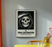 Final Destination Print, Alternative Movie Poster, Black & White, Minimal Wall Art, Skull, Death, Reaper, Flight, Boarding, Movie Fans Gift