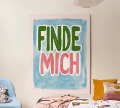 Nei toni vivaci dell'arancione e del viola, questa stampa d'arte "Find me" esprime a grandi lettere e a strisce il desiderio di amore e di scoperta di sé. La tipografia romantica incornicia la ricerca di un partner e lo stare insieme. Ideale per l'estate, il disegno cattura in modo giocoso l'essenza delle relazioni.