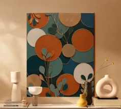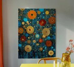 Un'impressionante esibizione di fuochi d'artificio astratti resi in una pulita geometria Bauhaus. Linee radianti e audaci esplosioni circolari illuminano la tela scura con un contrasto festoso e un tocco minimalista. Una celebrazione del movimento, del ritmo e della magia delle feste, perfetta per gli interni moderni alla ricerca di un tocco stagionale unico.