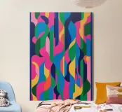 Un audace motivo astratto con un tocco di energia dinamica che simboleggia il movimento e la fluidità. Colori vivaci che evocano temi come l'acqua, la vita e il movimento. Una fusione innovativa di tradizione e modernità per interni contemporanei e minimalisti. Un linguaggio visivo unico che supera i confini culturali.