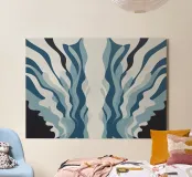 A bold abstract pattern with a touch of dynamic energy that symbolises movement and fluidity. Bright colours to evoke themes such as water, life and movement. An innovative fusion of tradition and modernity for contemporary, minimalist interiors. A unique visual language that transcends cultural boundaries.