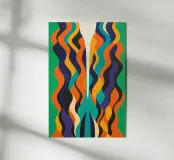 A bold abstract pattern with a touch of dynamic energy that symbolises movement and fluidity. Bright colours to evoke themes such as water, life and movement. An innovative fusion of tradition and modernity for contemporary, minimalist interiors. A unique visual language that transcends cultural boundaries.
