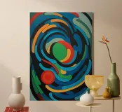 Un motif abstrait audacieux avec une touche d'énergie dynamique qui symbolise le mouvement et la fluidité. Des couleurs vives pour évoquer des thèmes tels que l’eau, la vie, et le mouvement. Une fusion innovante entre tradition et modernité pour des intérieurs contemporains et minimalistes. un langage visuel unique qui transcende les frontières culturelles.