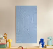 Un'opera d'arte astratta blu strutturata, realizzata con una sottile sfumatura di blu per creare profondità e contrasto. La superficie strutturata aggiunge un carattere moderno e un effetto rilassante. Perfetta per arredi costieri, interni nordici, camere da letto per bambini e amanti dell'arte contemporanea che cercano un tocco di serenità per la loro casa.