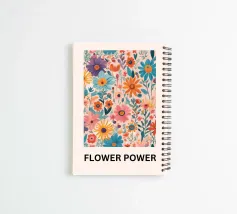Floral pattern with text in black: Flower Power. Generated with AI, among other things.