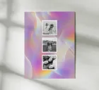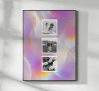 A luminous abstract composition of flowing pastel hues blends lavender, soft lilac, blush pink, warm peach, and golden yellow into a seamless, silky movement. The gentle curves and fluid transitions create a dreamy, almost holographic effect — like light refracting through sheer fabric at golden hour.