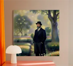 un tentativo di ritratto surreale contemporaneo per Claude Monet. con bordo.