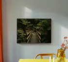 Made of wood or stone, it blends naturally with the surroundings, covered in moss and touched by dappled sunlight. Leaves rustle gently overhead, and the air is filled with the scent of earth and trees. The bridge crosses a small stream or path, inviting travelers to pause and enjoy the peaceful beauty of the forest.