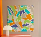 This design presents an abstract composition of organic lines and shapes in bold colours. The flowing transitions and harmonious arrangement lend the motif a calming and meditative aura.