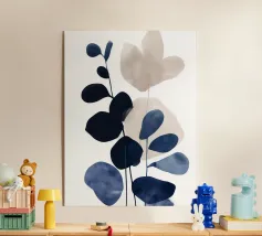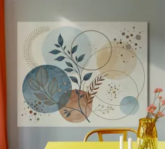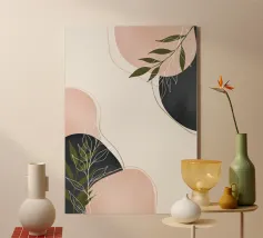 Forme astratte ad acquerello ed elementi botanici plexiglass