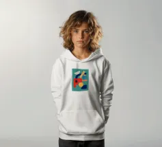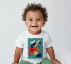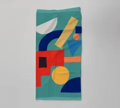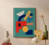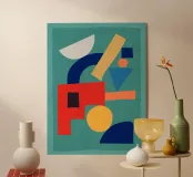 A playful abstract composition with soft shapes and warm colors.
