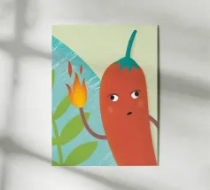 Un'affascinante illustrazione di una persona che indossa un costume da fragola con un'espressione simpatica.