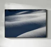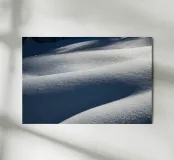Sanft geformte Schneewellen im Morgenlicht. Diese winterliche Landschaft zeigt glitzernde Schneekristalle, die wie gefrorene Wellen wirken. Ein ruhiges, minimalistisches Wintermotiv, perfekt als Wandkunst für alle, die klare Linien, Naturfotografie und dezente Winterstimmung lieben.