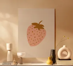 Come un ricordo stampato nel cemento, "Fruit Fossile" congela la fragola in un nero granuloso, grezzo, quasi archeologico. Questo poster evoca un tempo in cui la frutta era un totem, un simbolo, un marchio. A metà strada tra l'arte primitiva e l'estetica underground, trasforma la dolcezza in potere, la bontà in icona. Perfetto per un arredamento che non teme il contrasto, tra tenerezza del passato e tensione grafica.