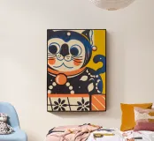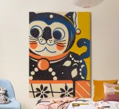 Questo affascinante poster mostra un gatto stilizzato in un design retrò, ispirato al simbolismo della felicità giapponese e alla pop art grafica. Con i suoi colori vivaci in giallo, blu e arancione, trasuda ottimismo e fascino vintage. Perfetto per gli appassionati di design di metà secolo, arte retrò e illustrazioni giocose. Un pezzo forte pieno di carattere ed energia positiva.
