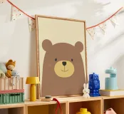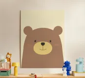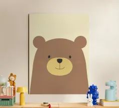 A warm and friendly minimalist illustration of a smiling bear, designed with soft shapes and a soothing neutral color palette. The simple composition and calm expression create a comforting, timeless feel that works beautifully in nurseries, children’s rooms, or modern Scandinavian interiors. This artwork adds a touch of sweetness and tranquility, making any space feel more welcoming and cozy.