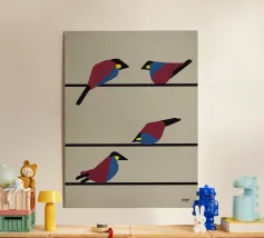 Gli accordi di sol maggiore, re maggiore e la maggiore, noti per il loro suono allegro e giocoso, sono utilizzati ripetutamente nella musica. Sono rappresentati visivamente da un design minimalista e ridotto - una sintesi del Suprematismo e dello stile Bauhaus che traduce la musica in visualizzazioni geometriche e colorate.