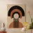 This elegant design combines clear geometric shapes with warm earthy colours such as black, brown and beige. The stylised sun, framed by curved arches and dynamic stripes, lends depth and harmony to the motif. Perfect for lovers of minimalist and timeless art. This design is ideal for wall murals, cushions, T-shirts and other products that bring modern elegance to any home.