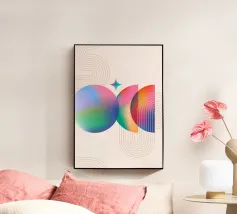 Matematica e arte si incontrano nella forma perfetta di un cerchio. Questo poster gioca con il ritmo, la ripetizione e le sottili variazioni che l'occhio può riscoprire più volte. Ispirato ai principi di armonia e movimento, crea una composizione che irradia calma e dinamismo allo stesso tempo. La disposizione delicata invita a soffermarsi e crea un'atmosfera di equilibrio, ideale per gli ambienti che favoriscono la chiarezza e l'ispirazione creativa.