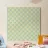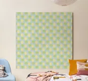 A repetitive pattern of intersecting lines creates a grid with alternating colors of green, pink, and orange. The geometric design forms a visually balanced and symmetrical effect.