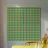 A repetitive pattern of intersecting lines creates a grid with alternating colors of green, pink, and orange. The geometric design forms a visually balanced and symmetrical effect.