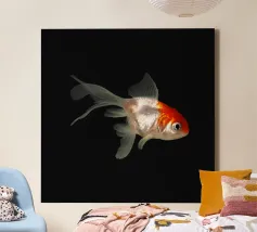 Kleiner Schleierschwanz auf schwarzem Untergrund.