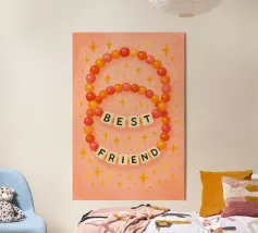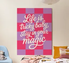 Un poster con citazioni di ispirazione vintage, con toni verdi e arancioni brillanti incorniciati da un bordo retrò ondulato. Progettato per portare positività e colore in qualsiasi spazio moderno.