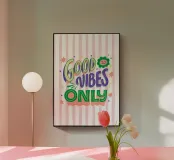 GOOD VIBES ONLY Stampa d'arte con scritte retrò e groovy plexiglass