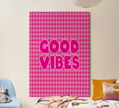 GOOD VIBES - Pink Retro Bubble Font Art Print plexiglass