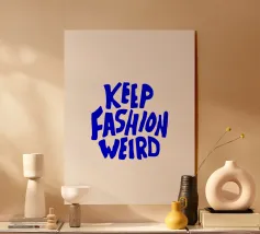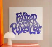 Questa vivace opera d'arte da parete presenta uno stile tipografico audace e groovy ispirato all'estetica retrò degli anni '70, con lettere lisce e ondulate riempite da un sorprendente gradiente blu-viola.