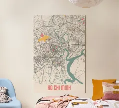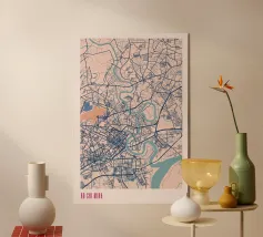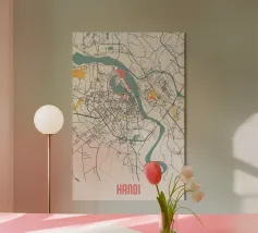Questa elegante mappa di Hanoi mostra l'energia fluida della capitale vietnamita. Con linee pulite, colori vivaci e dettagli precisi, riflette la vita vibrante e i corsi d'acqua della città - un'opera d'arte moderna per gli amanti della cultura urbana.