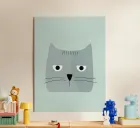 This minimalist illustration features a calm and friendly cat with a soft, gentle expression. Created in a Bauhaus-inspired, geometric style with muted pastel tones, it feels simple and well balanced. A soothing wall art piece for nurseries and children’s rooms, adding a calm and comforting atmosphere.
