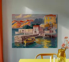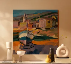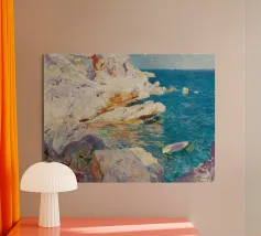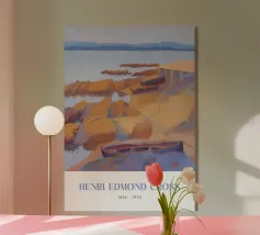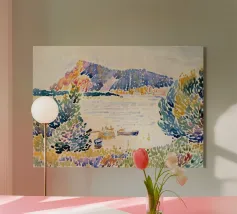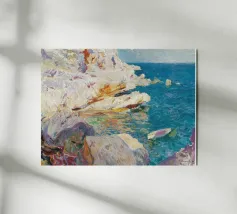Scoprite la vibrante bellezza di una calanca mediterranea catturata nello stile puntinista di Henri-Edmond Cross. Questo poster d'arte, probabilmente intitolato "Calanque des Antibois", raffigura una piccola baia pittoresca vicino ad Antibes con rocce colorate, acque tranquille e barche che riposano sulla riva. La tecnica tipica dell'artista, che consiste nell'applicare colori puri in punti distinti, crea una superficie vivace e strutturata che risplende di luce. Prodotto come arte digitale di alta qualità a 7000x5000 pixel e 300 dpi, garantisce una rappresentazione fedele dei colori brillanti e dei dettagli più fini per un'opera d'arte di qualità.